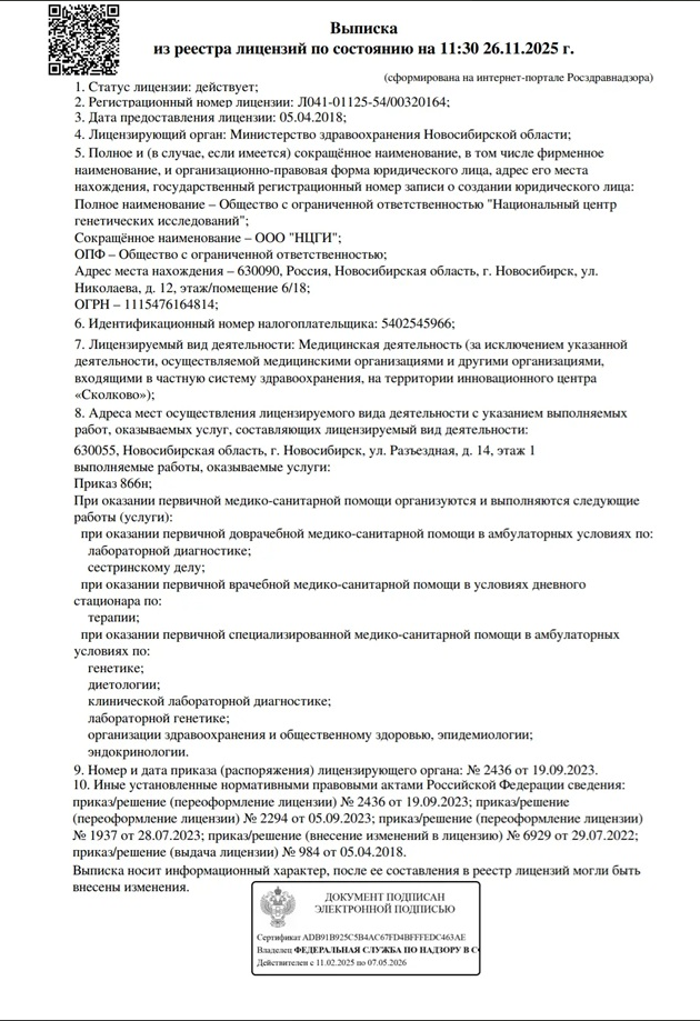 Точность этого ДНК теста высочайшая и достигает 100%. Лаборатория проводит параллельно два теста разными группами специалистов для независимого контроля информации. Затем результаты заверяются подписью заведующего лабораторией и печатью.